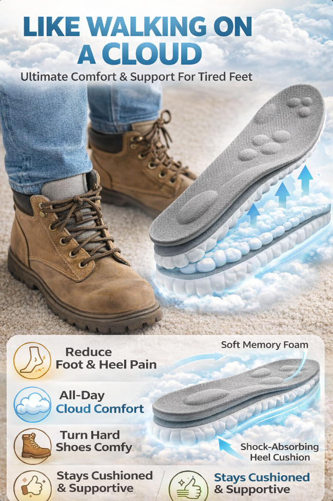 FreeStep Insoles are designed to fit most shoe types including work boots, sneakers, and casual shoes.